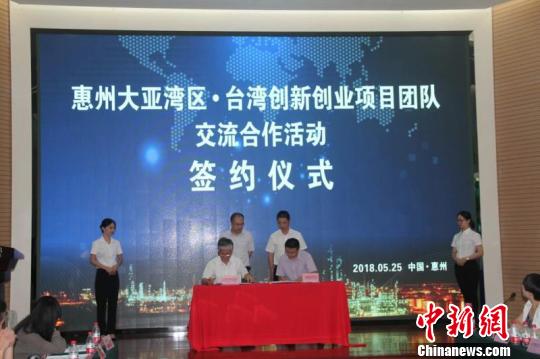 圖為惠州大亞灣區(qū)與臺(tái)灣創(chuàng)新創(chuàng)業(yè)項(xiàng)目團(tuán)隊(duì)進(jìn)行交流合作簽約。 康孝娟 攝