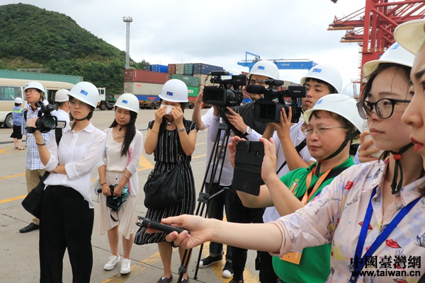 兩岸記者參觀寧波舟山港穿山港區(qū)。(中國臺灣網(wǎng) 李奕均 攝)