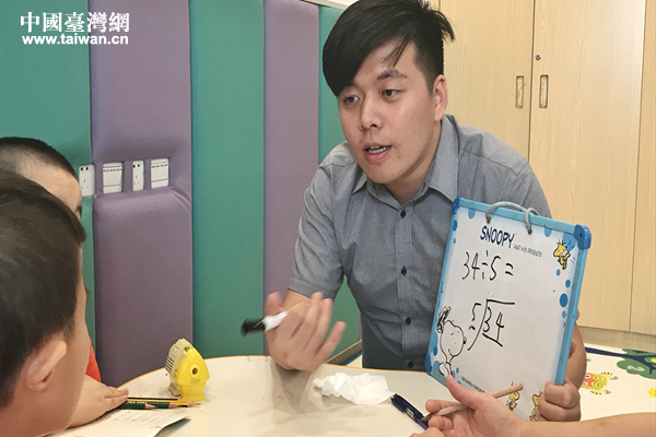 林上哲在昆山市福利院兒童部教學(xué)。(昆山市臺(tái)辦供圖)