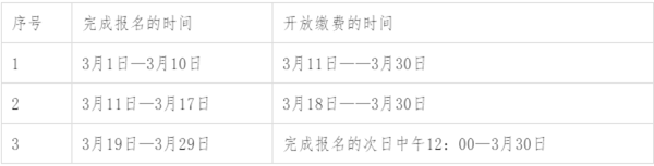 2. 在指定時(shí)間內(nèi)完成報(bào)名的考生可在相對(duì)應(yīng)繳費(fèi)的時(shí)間內(nèi)進(jìn)行網(wǎng)上繳費(fèi),具體如下: