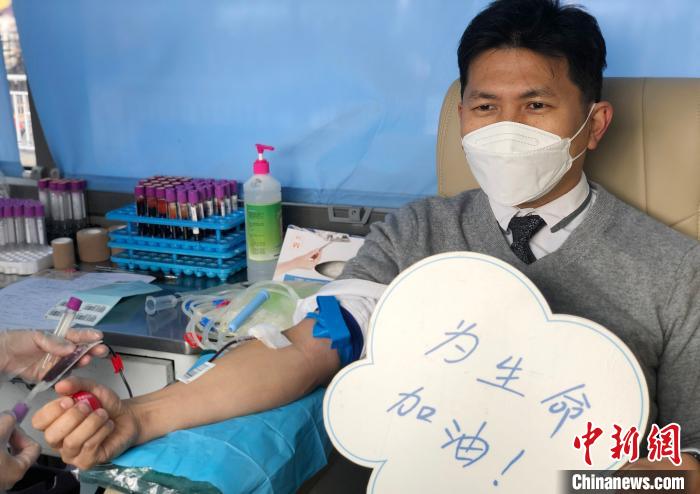“獻(xiàn)血抗疫情·兩岸熱血守山城”無(wú)償獻(xiàn)血活動(dòng)13日在重慶醫(yī)科大學(xué)附屬第三醫(yī)院舉行。在渝臺(tái)商、臺(tái)胞共計(jì)200余人參與獻(xiàn)血愛(ài)心接力,詮釋“血脈相連”。