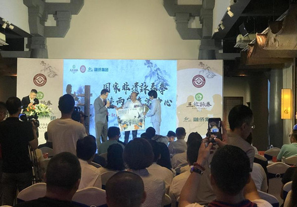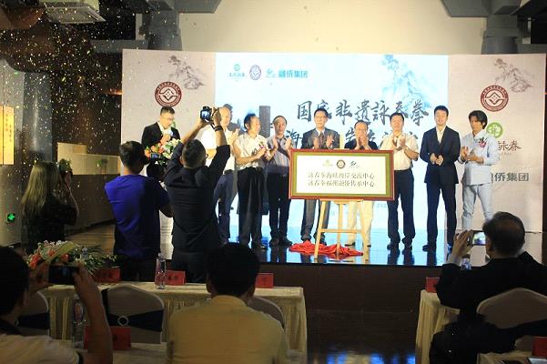 8月28日上午,國家非遺詠春拳海峽兩岸交流中心在福州成立并舉行揭牌儀式。(圖片來源:福建省臺辦)
