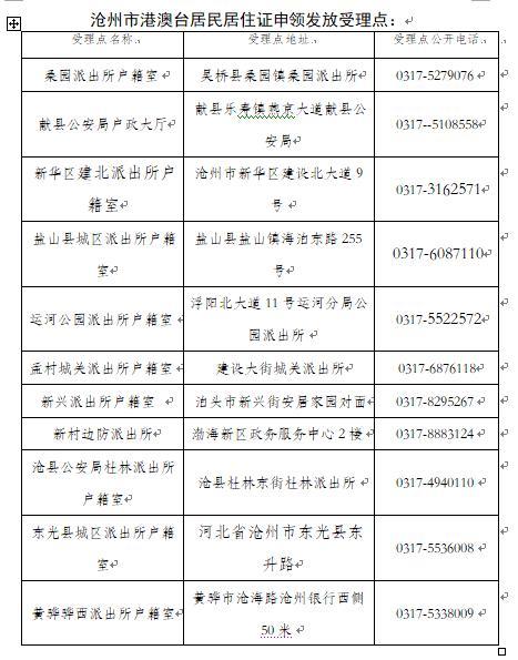 根據(jù)公安部、省公安廳的統(tǒng)一部署,滄州市9月1日起受理發(fā)放港澳臺居民居住證。
