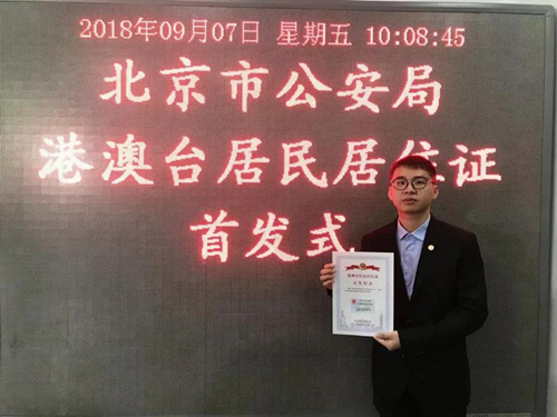 “我很高興成為臺(tái)灣第一位‘新北京人’,可以跟大陸同胞一樣,所有大大小小的問題都因?yàn)檫@張證件迎刃而解,它可以讓我在北京更好的生活、更好的發(fā)展。” 9月7日上午,創(chuàng)業(yè)公社港澳臺(tái)國際事業(yè)部總經(jīng)理鄭博宇終于領(lǐng)到了期待已久的“中華人民共和國臺(tái)灣居民居住證”。
