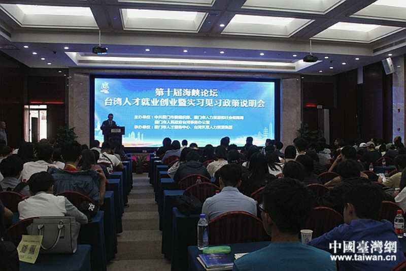 中國臺(tái)灣網(wǎng)6月9日廈門訊(記者 汪明珠)8日下午,第十屆海峽論壇·臺(tái)灣人才就業(yè)創(chuàng)業(yè)暨實(shí)習(xí)見習(xí)政策說明會(huì)在廈門舉行。會(huì)上對(duì)臺(tái)灣人才在廈門就業(yè)創(chuàng)業(yè)及實(shí)習(xí)見習(xí)等政策進(jìn)行宣講,并邀請(qǐng)?jiān)陉懢蜆I(yè)創(chuàng)業(yè)的臺(tái)灣人士分享經(jīng)驗(yàn)及心得體會(huì)。