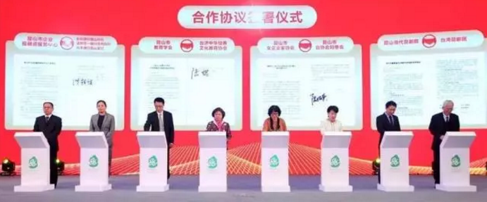 ▲圖為在昆山市貫徹落實《關(guān)于促進兩岸經(jīng)濟文化交流合作的若干措施》工作推進會上,昆山當(dāng)代昆劇院與臺灣昆劇團簽訂合作協(xié)議。右一:臺灣昆劇團團長洪惟助教授;右二:昆山當(dāng)代昆劇院總經(jīng)理張克明。