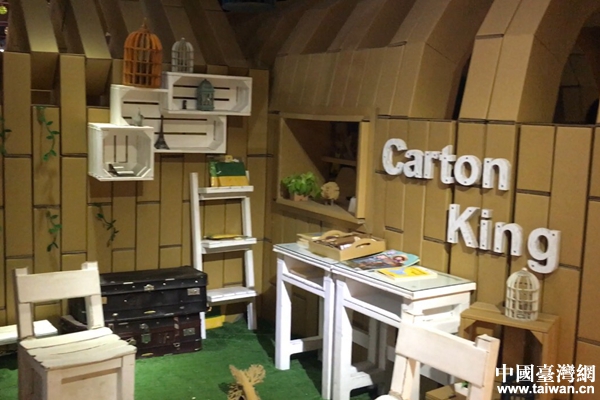 麥可將兩岸文創(chuàng)園紙箱王一角。(中國臺灣網(wǎng) 趙蓉 攝)