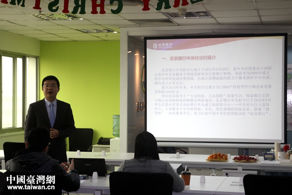 北京銀行代表向兩岸青年創(chuàng)客介紹資金信貸服務(wù)。(中國(guó)臺(tái)灣網(wǎng) 陳文韜 攝)
