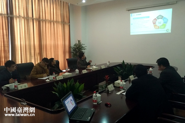 座談會上,金山科創(chuàng)園總經(jīng)理王瑋向杭州市臺辦一行介紹了上海(金山)海峽兩岸青年創(chuàng)業(yè)基地的建設(shè)發(fā)展情況,雙方就兩岸青創(chuàng)基地的未來發(fā)展模式展開熱烈討論。