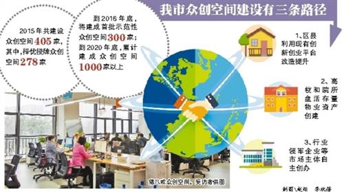 重慶日?qǐng)?bào)訊 (記者李珩)近日,記者從市科委獲悉,全市2015年共建設(shè)眾創(chuàng)空間405家,其中,擇優(yōu)授牌眾創(chuàng)空間278家,為小微創(chuàng)新企業(yè)成長和個(gè)人創(chuàng)業(yè)提供低成本、便利化、全要素的開放式綜合服務(wù)平臺(tái)。