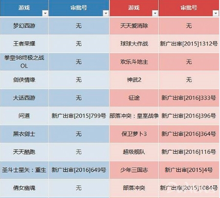很多已經(jīng)上線的知名游戲沒(méi)有獲得審批號(hào)