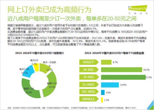 此次艾瑞報(bào)告中加入了國(guó)家統(tǒng)計(jì)局的數(shù)據(jù),我國(guó)城鎮(zhèn)居民均可支配收入從2010年的1.9萬(wàn)上升到了2015年的3.1萬(wàn),更高的消費(fèi)能力意味著更高的品質(zhì)追求,頻次、消費(fèi)單價(jià)的增加。