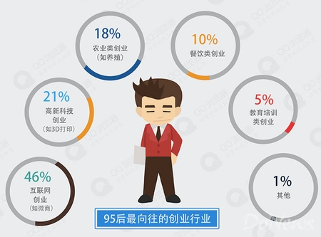 寧做吃土創(chuàng)業(yè)者,不當(dāng)高級打工仔。在“不就業(yè)”的95后中,除了讀書外,有超過15%的人向往創(chuàng)業(yè)當(dāng)老板。而在選擇創(chuàng)業(yè)領(lǐng)域方面,互聯(lián)網(wǎng)依然是95后創(chuàng)業(yè)的首選,其中高達(dá)46%的人會選擇海淘、020、自媒體等新興互聯(lián)網(wǎng)創(chuàng)業(yè)項目,也有越來越多的95后開始用自己學(xué)習(xí)到的先進(jìn)知識反哺家鄉(xiāng),摸索起農(nóng)業(yè)創(chuàng)業(yè)的門道。