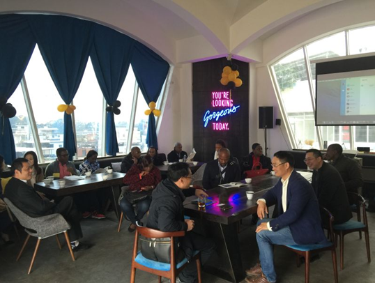 時光流逝,考察團友人們顯然不滿足于點點言語介紹。一行人在黃雙全董事長帶領(lǐng)下實地走訪位于三樓的靚媽學(xué)院、五樓的普維貿(mào)易以及七樓的創(chuàng)想天臺等廈門光彩創(chuàng)業(yè)園的特色企業(yè)。活力四射的靚媽廣場舞瞬間抓住外國友人視線,大家身體跟隨不自由擺動;維普貿(mào)易涌現(xiàn)許多身懷令人驚艷的語言高手,充當(dāng)起翻譯為考察團們進行生活形象的介紹;創(chuàng)想天臺里,一杯杯咖啡為此次考察更是劃上完美句點。