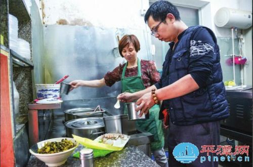 昨天10點(diǎn)30分,記者走進(jìn)福勝東路一家“臺(tái)灣錢記鴨肉面”,這是臺(tái)胞錢再旺和妻子林蓮玉開的一家小店,專做臺(tái)灣菜。林蓮玉正提著從市場剛剛采購回來的新鮮食材,打算為午餐生意做準(zhǔn)備,錢再旺趕緊上前為妻子搭把手。