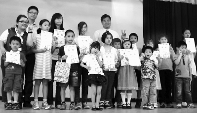 蓋夢(mèng)麟(后中)與在榕舉辦的兩岸兒童公益繪畫(huà)比賽獲獎(jiǎng)?wù)吆嫌啊?/font>