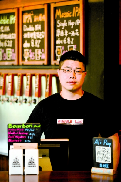 在漢口大智路輕軌站附近,一家名為“Bubble Lab氣泡實驗室”的精釀啤酒美式西餐廳吸引了不少武漢食客慕名而來。餐廳的創(chuàng)始人趙昶睿,是一位有著娃娃臉的臺灣“80后”男生。來武漢開拓精釀啤酒的小眾市場,趙昶睿說,自己有獨特的“武漢情節(jié)”,希望通過自己的創(chuàng)業(yè)項目,為武漢的餐飲文化注入新活力。