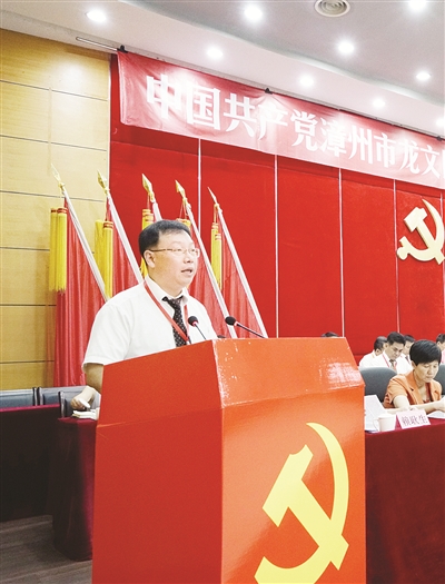 龍文區(qū)委書記歐龍光在黨代會上作報告