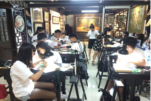 “體驗溫州發(fā)展 放飛創(chuàng)業(yè)夢想” 實習(xí)實踐活動按計劃進行。來自臺灣的同學(xué)們認(rèn)真的投入到第一階段的學(xué)習(xí)中。他們被分成兩組,在浙江創(chuàng)意園的工作室,分別跟隨資深大師,進行甌塑、甌繡的學(xué)習(xí)體驗。