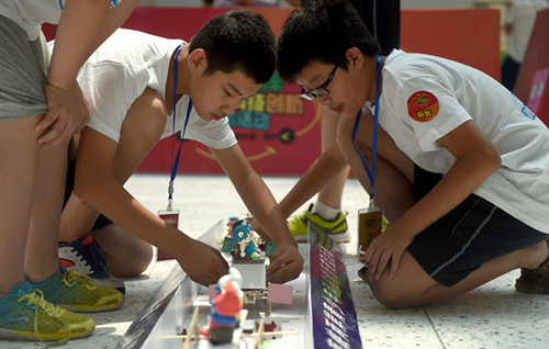 選手正在認(rèn)真制作機(jī)器人