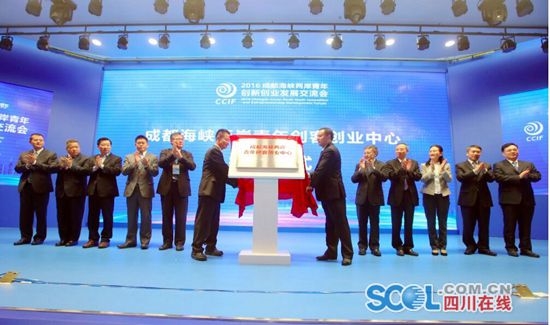 開幕式上,成都市人民政府副市長傅勇林、四川省人民政府臺(tái)灣事務(wù)辦公室主任周敏謙、(臺(tái)灣)中華青年企業(yè)家協(xié)會(huì)榮譽(yù)理事長劉燦樹、全國臺(tái)灣同胞投資企業(yè)聯(lián)誼會(huì)常務(wù)副會(huì)長高錦樂分別致辭。(臺(tái)灣)中華青年企業(yè)家協(xié)會(huì)與成都高新區(qū)共同揭牌成立了“成都海峽兩岸青年創(chuàng)客創(chuàng)業(yè)中心”。