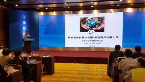 北京遠(yuǎn)見育成科技孵化器公司、北京臺灣青年創(chuàng)業(yè)基地總經(jīng)理陳冠融發(fā)言