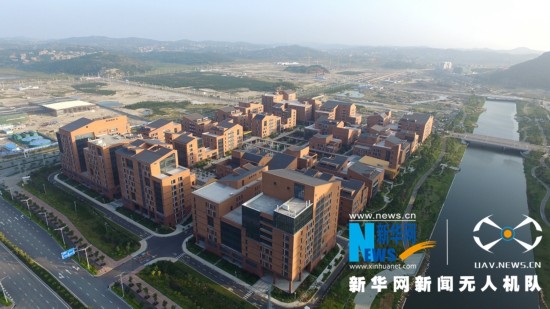平潭綜合實驗區(qū)臺創(chuàng)園側(cè)后方全景圖,外圍綠水流過。 肖和勇攝