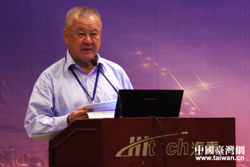 臺灣工商協(xié)進(jìn)會理事長、臺灣玻璃集團(tuán)董事長林伯豐出席交流會并致辭。(中國臺灣網(wǎng) 張潔 攝)