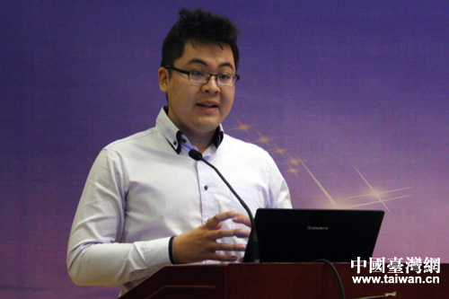 臺灣青商總會會長、健統(tǒng)實(shí)業(yè)股份有限公司總經(jīng)理郭倫豪發(fā)言。(中國臺灣網(wǎng) 張潔 攝)