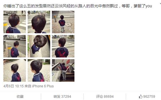 曬完男娃曬女娃,超哥這是在拉仇恨吧,男女雙全人生贏家啊!超哥最有意思的就是極度自信的文案和調(diào)侃調(diào)性,最后的結(jié)尾總會拋出疑問讓粉絲忍不住說他兩句,這就是他的魅力,不信,看看他的粉絲留言。