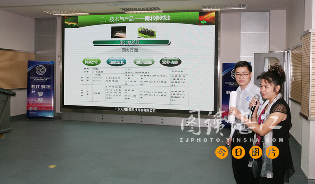碧海銀沙網訊(圖文/王文和 陳 煉 段 靜 編輯/文 和 少 瓊)11月22日, 2015首屆中國(湛江)“南方海谷杯”海洋科技創(chuàng)新創(chuàng)業(yè)大賽復賽在嶺南師范學院舉行。湛江奮勇高新區(qū)管委會副主任吳承光、湛江市科技局副調研員陳祥勝出席了比賽活動。來自湛江的10個企業(yè)代表隊的13個項目參加了復賽(全國共有150個企業(yè)代表隊報名參加企業(yè)組比賽,其中湛江賽區(qū)共有23個企業(yè)代表隊)。