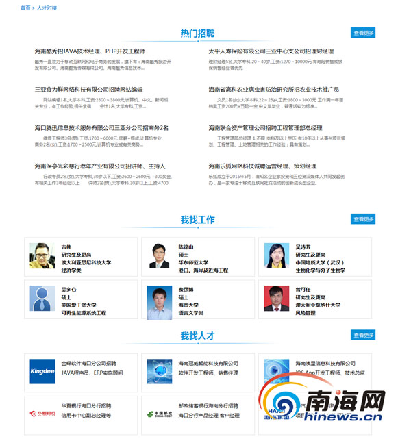 人才對接頁面截圖