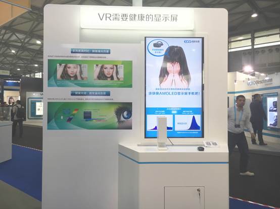 同時(shí),和輝光電向來(lái)訪者展示了健康護(hù)眼顯示屏與VR產(chǎn)品的必要聯(lián)系。健康護(hù)眼的AMOLED顯示屏與電子產(chǎn)品息息相關(guān)。高能藍(lán)光普遍存在于所有的LED/LCD光源設(shè)備中,包括日常使用的手機(jī)等電子通訊設(shè)備,也包括當(dāng)下正熱的VR設(shè)備。直接暴露在高能藍(lán)光之下的人眼會(huì)受到不同程度的損傷。和輝光電一如既往地關(guān)注AMOLED顯示屏產(chǎn)品的健康領(lǐng)域,并在現(xiàn)場(chǎng)設(shè)置了藍(lán)光光譜測(cè)試儀供來(lái)訪者測(cè)試及體驗(yàn),旨在提高用戶對(duì)于健康護(hù)眼的關(guān)注度。