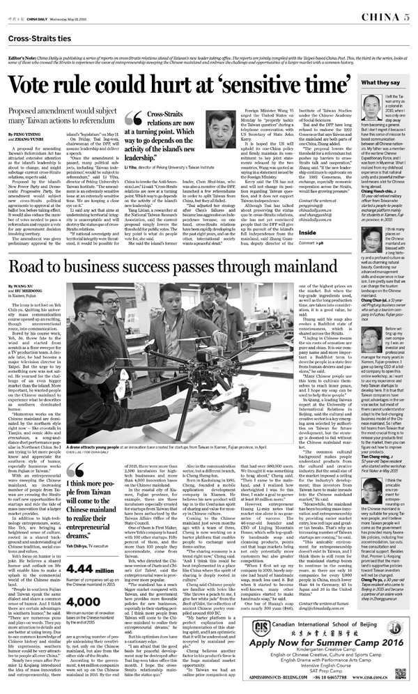 《中國(guó)日?qǐng)?bào)》5月18日第五版大版面報(bào)道一品創(chuàng)客,以下為版面情況。