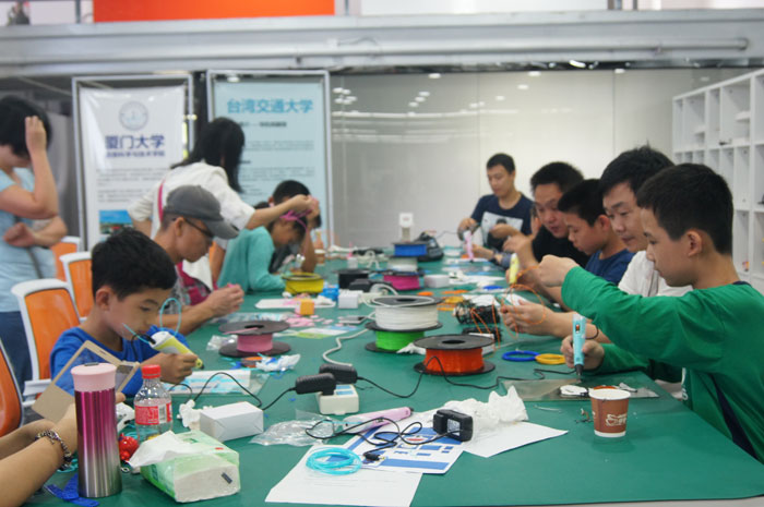 海峽兩岸無人機暨智能機器人孵化基地攜手智凡三維團隊,舉辦3D打印親子體驗活動,帶來了最潮的3D打印筆。3D打印筆基于3D打印原理,擠出熱融的塑料,然后在空氣中迅速冷卻,最后固化成穩(wěn)定的狀態(tài);顒蝇F(xiàn)場,小朋友們利用這支神筆,做了一回“神筆馬良”,把創(chuàng)意馬上成型,共同創(chuàng)作3D立體畫。