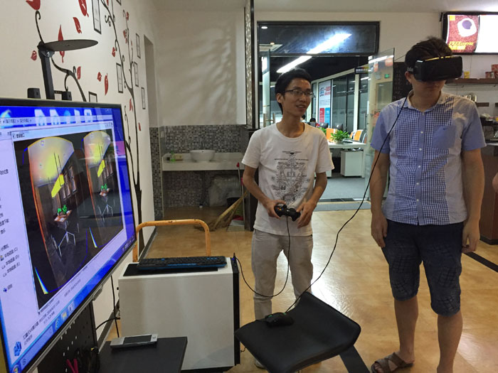 陳健分享:莫忘初心。最初匯鑫元想做的,是將目前市場家裝設(shè)計(jì)僅靠圖紙展示單一抽象方式變?yōu)楦蝇F(xiàn)實(shí)化。去年一直到今年,VR大火。我們將家裝設(shè)計(jì)和VR設(shè)備結(jié)合起來,目標(biāo)就是要做出讓家裝能夠真正走入現(xiàn)實(shí)的這么一套VR系統(tǒng)。初心沒變,為方便消費(fèi)者體驗(yàn)的心更不會(huì)變。