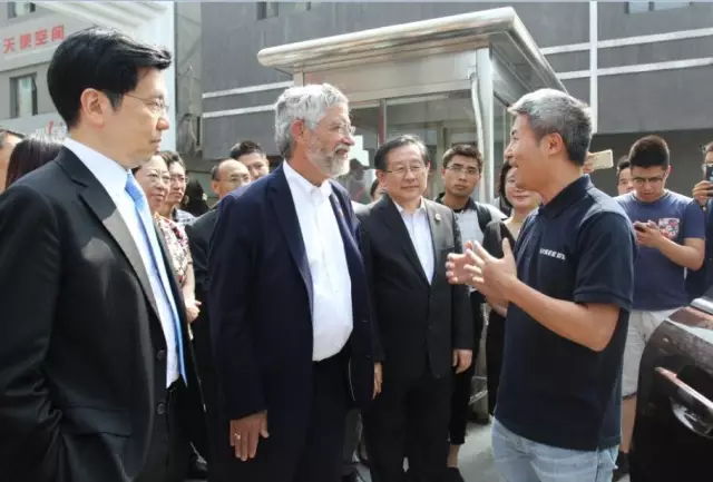 2016年6月7日,美國(guó)總統(tǒng)科技助理兼白宮科技政策辦公室主任John Holdren博士,美國(guó)白宮科技政策辦公室高級(jí)政策顧問(wèn)Mahlet Mesfin,美國(guó)駐華使館科技官員 Dwain Atkinson攜代表團(tuán)一行參觀中關(guān)村創(chuàng)業(yè)大街。全國(guó)政協(xié)副主席、科技部部長(zhǎng)萬(wàn)鋼,科技部火炬中心主任張志宏,北京市科委主任閆傲霜,科技部國(guó)際合作司副巡視員蔡嘉寧,中關(guān)村管委會(huì)國(guó)際化業(yè)務(wù)總監(jiān)曾曉東,創(chuàng)新工場(chǎng)創(chuàng)始人、董事長(zhǎng)李開復(fù),馭勢(shì)科技(北京)有限公司聯(lián)合創(chuàng)始人、首席執(zhí)行官(馭勢(shì)無(wú)人駕駛)吳甘沙,科通芯城集團(tuán)及硬蛋科技首席技術(shù)官李世鵬等陪同參觀。海淀置業(yè)總經(jīng)理助理、海置科創(chuàng)董事長(zhǎng)姚宏波,清控科創(chuàng)總裁助理、海置科創(chuàng)執(zhí)行總經(jīng)理聶麗霞等接待了來(lái)訪嘉賓。