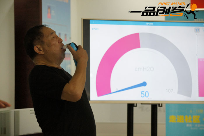 6月15日,世界呼吸日,一品創(chuàng)客·海峽兩岸無人機暨智能機器人孵化基地孵化的賽客團隊走進海滄海發(fā)社區(qū),為社區(qū)大學的老人們舉行一場“新鮮”科普講座。此外,他們帶著自主研發(fā)的智能呼吸訓練器,免費為老人做呼吸功能檢測,指導大家如何通過呼吸鍛煉來提升呼吸機能。