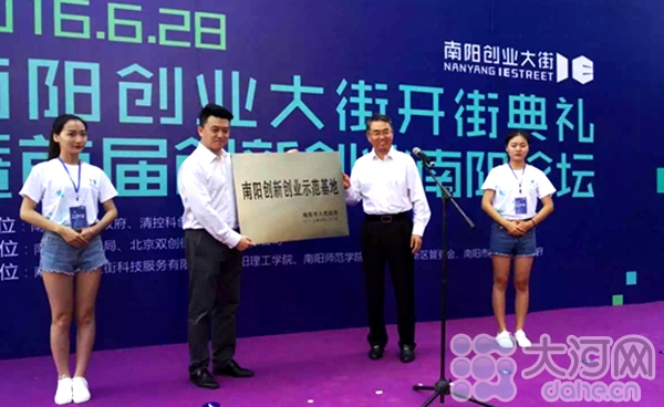 市委副書記、市長霍好勝致辭,市委穆書記向街區(qū)授予并頒發(fā)了“南陽創(chuàng)新創(chuàng)業(yè)聚集示范區(qū)”證書;科技部火炬中心副主任安道昌對南陽創(chuàng)業(yè)大街建設(shè)表示贊賞,同時也對南陽雙創(chuàng)成果給予了肯定;主要領(lǐng)導(dǎo)尤其關(guān)注創(chuàng)業(yè)服務(wù)尤其是企業(yè)登記制度改革工作的落實與推進,深入了解一站式政務(wù)服務(wù)平臺,并向達寶恩企業(yè)頒發(fā)了在南陽創(chuàng)業(yè)大街注冊成功的首個營業(yè)執(zhí)照;28日下午,市委常委、副市長楊立憲在首屆創(chuàng)新創(chuàng)業(yè)南陽論壇致辭發(fā)言,與國內(nèi)智能制造領(lǐng)域?qū)<夜步ㄕ搲,助力南陽產(chǎn)業(yè)發(fā)展與智慧城市建設(shè)。