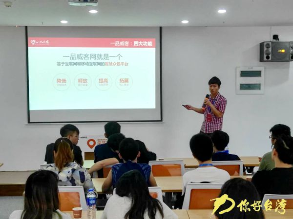 你好臺灣網(wǎng)7月20日消息 參加“臺灣新世代maker訓(xùn)練營”活動的兩岸青年來到一品威客創(chuàng)客空間,參觀園區(qū)及辦公場所。一品創(chuàng)客招商經(jīng)理陳怡添為大家介紹了他們的項目孵化及投資方面的情況。