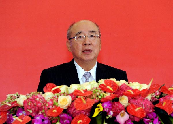 Wu Poh-hsiung, honorary chairman of the Kuomintang (KMT) Party, addresses the opening ceremony of the Cross-Strait Economic, Trade and Culture Forum, a regular forum between the Chinese mainland and Taiwan, held in Chengdu, capital of southwest China's Sichuan Province, May 7, 2011. Jia Qinglin, member of the Standing Committee of the Political Bureau of the Communist Party of China (CPC) Central Committee attended the opening ceremony. More than 400 representatives and experts from both sides attended the forum. (Xinhua/Rao Aimin) |