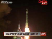 China's 1st space lab module Tiangong-1 blasts off