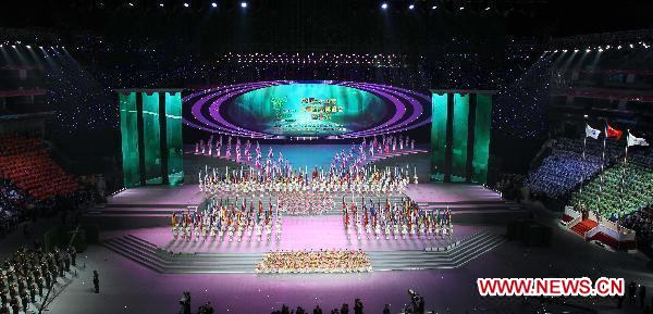 The closing ceremony of Shanghai World Expo 2010 is held at the Expo Cultural Center in the World Expo Park in Shanghai, east China, Oct. 31, 2010. The 184-day Shanghai World Expo concluded here Sunday. The even drew the participation of 246 countries and international organizations, and attracted more than 73 million visitors, a record high in the Expo history. (Xinhua/Fan Jun)