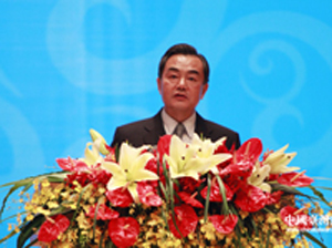 Wang Yi, director of the Taiwan Work Office of the Communist Party of China Central Committee and also director of State Council's Taiwan Affairs Office, delivers a speech at the third Straits Forum in Xiamen, southeast China's Fujian Province, Ju...