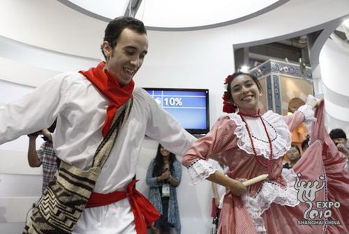 The performance drew big applauses from viewers and some even followed the steps of Cumbia dancers on the stage. A 3D film about Colombia's sceneries and heritages was also screened at the pavilion.