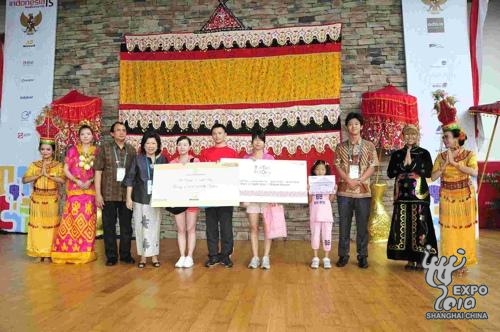 The girl won two round-trip tickets for Shanghai – Jakarta -- Batam -- Bintan Island, Indonesia, three-day-two-night accommodation including meals at a five-star hotel in Jakarta and free meals for two at Enak! Restaurant inside the pavilion. The pavilion’s director Widharma Raya and Mari Pangestu, the Minister of Trade of Indonesia, presented the gifts to her.
