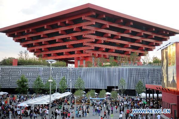 Visitors tour besides China's National Pavilion in the Shanghai World Expo Park in Shanghai, east China, Sept. 23, 2010. The daily visitors reached 623,500 as of 7 p.m. (1100 GMT) on Thursday, a record high since the opening of the park, according to the World Expo official website. (Xinhua/Zhou Ke)