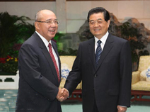 The Communist Party of China (CPC) Central Committee General Secretary Hu Jintao met with Wu Poh-hsiung, honorary chairman of the Kuomintang (KMT) Party, in Beijing Monday.