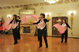 僑胞代表表演古典舞 使館婦女小組表演扇子舞
