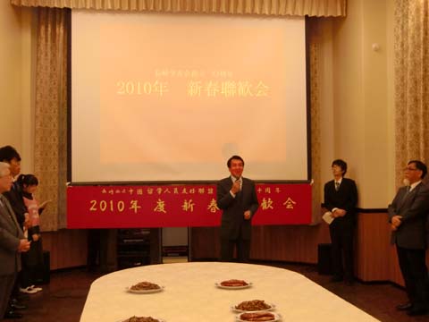長崎中國留學生學友會會長張賀在聯(lián)歡會上致詞,他對與會中外來賓長期以來對長崎地區(qū)中國留學生的關心和幫助表示感謝,并介紹了長崎中國留學生學友會及縣內(nèi)各大學中國留學生團體的發(fā)展情況。張賀同學同時表示,長崎地區(qū)的中國留學生雖然來自祖國各地,但大家在中國駐長崎總領事館的關懷和指導下,都能夠繼承和發(fā)揚長崎中國留學生團結(jié)奮進、心系祖國的優(yōu)良傳統(tǒng)。我們刻苦學習,與當?shù)厝嗣窈湍老嗵,為中國與長崎的友好交流奉獻了綿薄之力,今后我們一定不辜負祖國對我們的殷切期望,早日學有所成,為祖國的建設和中日友好事業(yè)的發(fā)展貢獻力量。